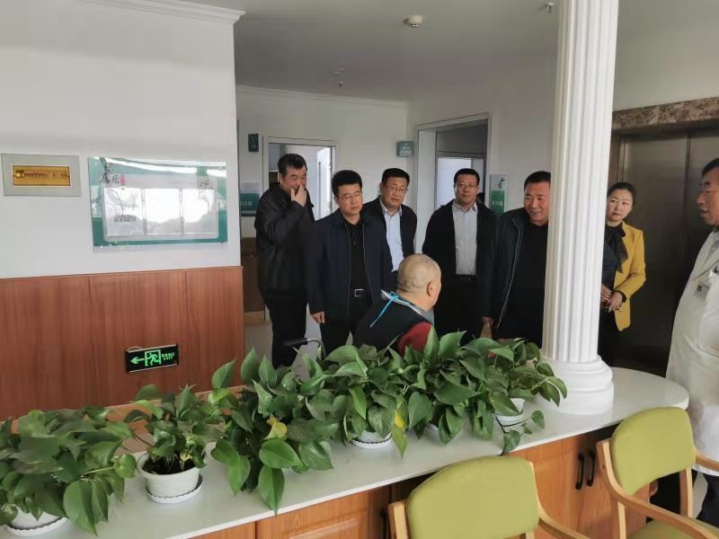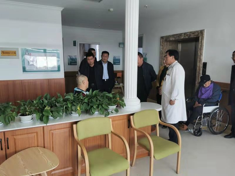 与此同时,中心经理闫禹辰从如何为院内住养老人提供医养结合服务、老年人用餐情况、业余文化生活进行了汇报,并向领导一行介绍了医养中心在医疗、康复养老结合的特点及亮点。领导们实地寻问了现公寓的床位数、入住老人数、伙食标准以及管理等情况。